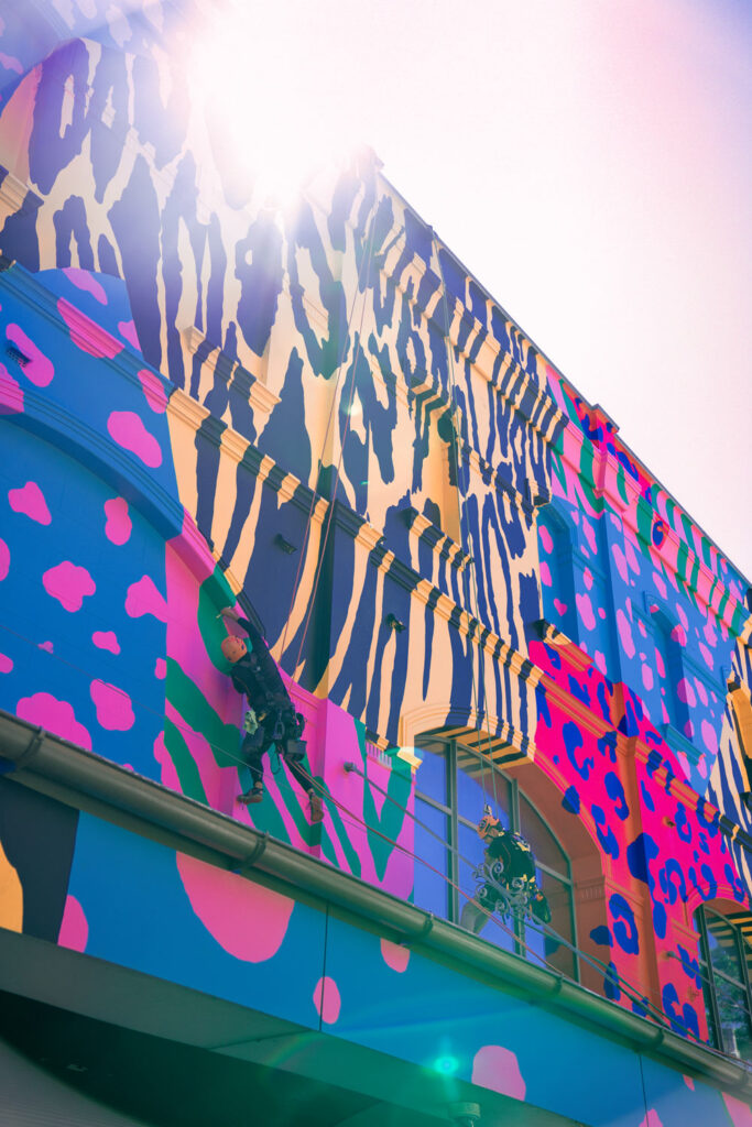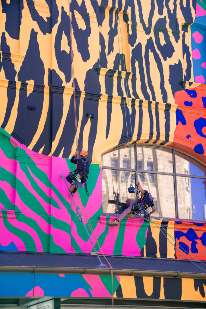 Given the scale and complexity of the mural, traditional access methods were not suitable. Our IRATA-certified technicians utilised advanced rope access systems to safely reach all elevations of the structure, allowing the project to be completed efficiently with minimal disruption to the surrounding streets and businesses in this busy entertainment precinct.